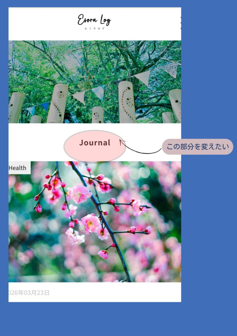 最近、ブログのトップページある「ブログ」と入力された部分を変えたいなと思ってました。