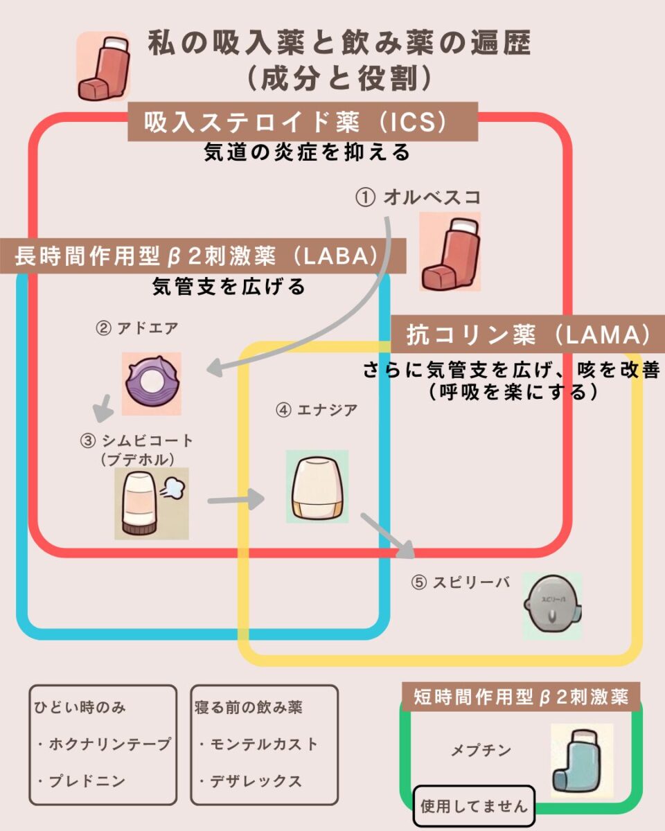 15年間の私の吸入薬と飲み薬の遍歴を図にしてみました!
